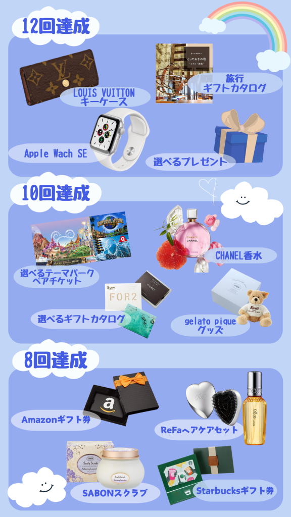 12回の配信達成⭐️上記画像のプレゼントor 30,000円相当の選べる商品